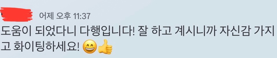 마지막으론 막상 개발기간엔 "아... 왜 살지" 하면서 하루하루를 살았던 것 같은데, 데모부스 운영하면서 다른 프론트분들이 오셔서 막 이거 어떻게 구현했는지 여쭤보시고, 고생 많이 하셨을거 같다, 대단하다, 이런 얘기를 들으니까 너무 감격스러웠던 것 같다. 그리고 다 끝나고 나니 뭔가 행복했던 것 같고 ㅎㅋㅋㅋ 좋은 기억만 남은 것 같다.