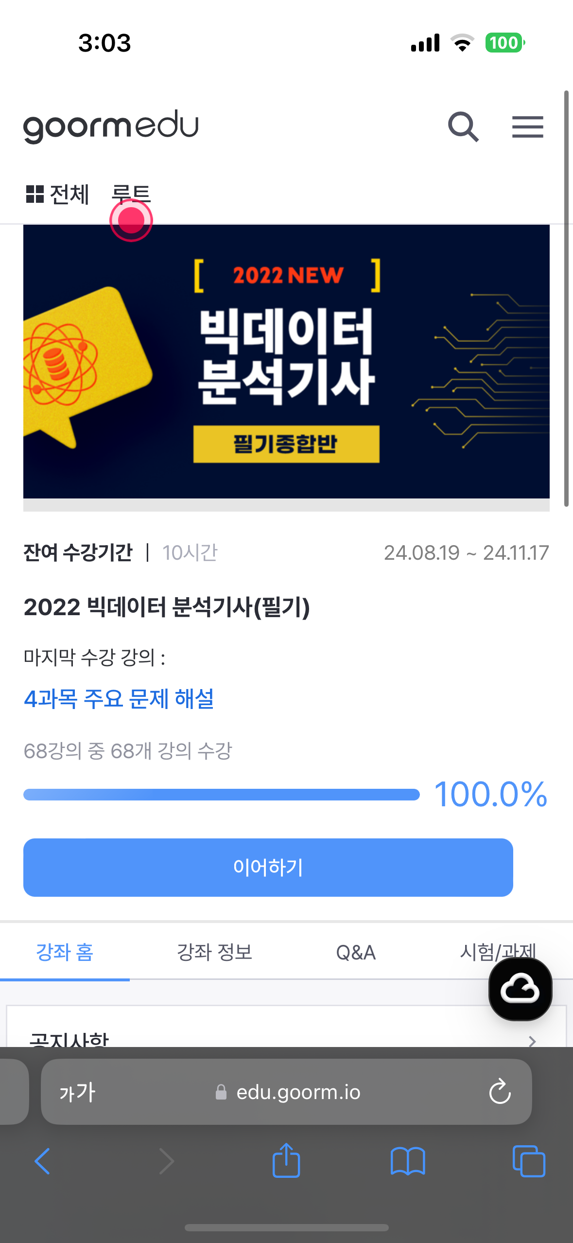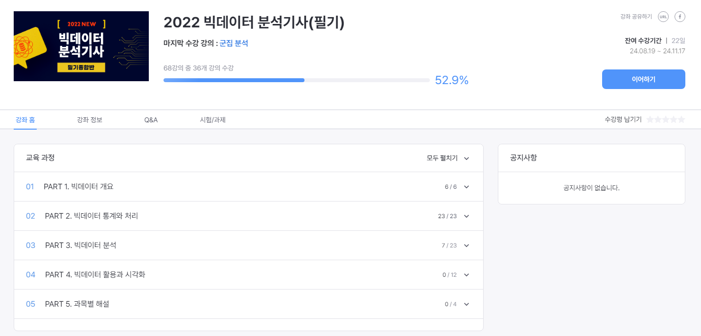 구름edu 2022 빅데이터 분석기사(필기) 강의 후기2