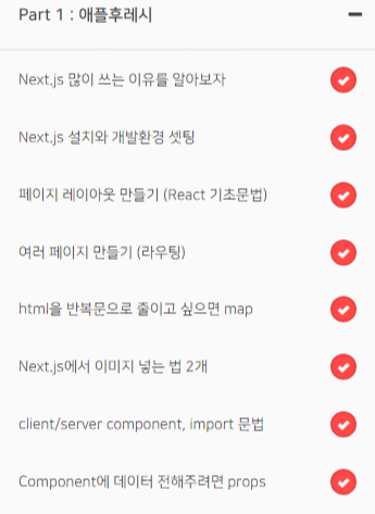 코딩애플에서 진행하는 Next.js 강의 수강을 완료했고, 이번 세미나 발표만 남았다. 백엔드와 프론트엔드를 같이 배운 느낌이라고 해야하나..? 무튼 신기한 경험이였고(다크모드 구현이 재밌었다), 마지막 주는 너무 바빠 실습을 완벽하게 하지 못했는데, 추후에 다시 해봐야겠다고 생각했다.마지막 세미나 발표도 준비 잘 해가서 좋은 마무리로 매듭짓기를.