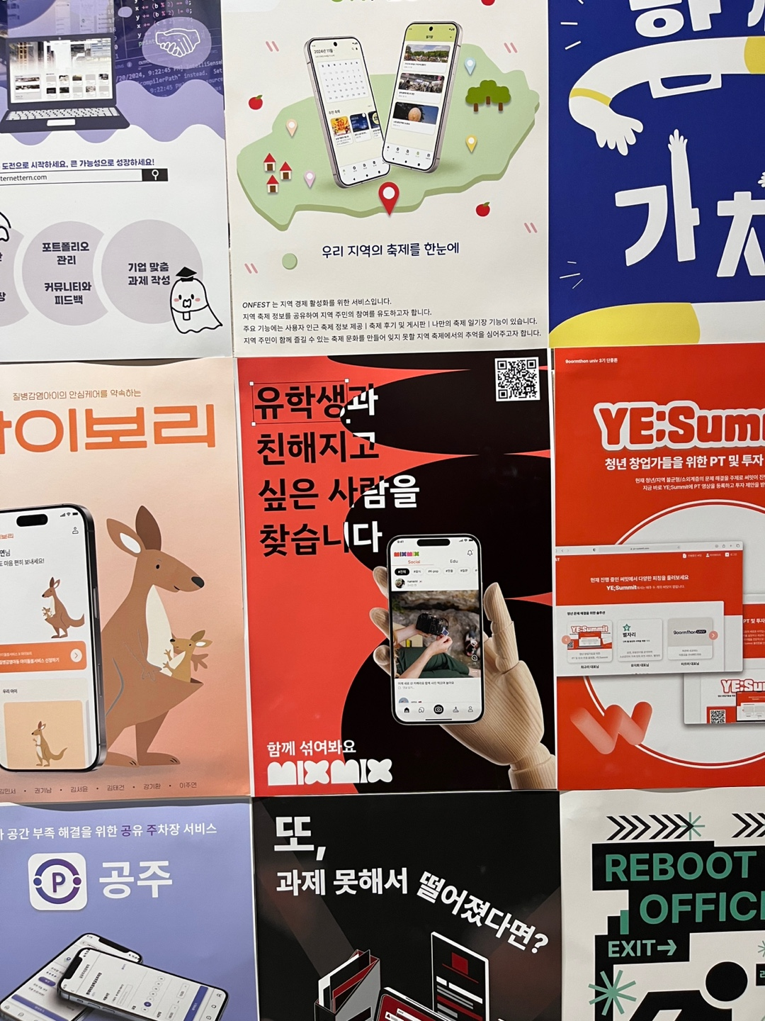 최종발표는 5분정도의 기획안 발표로 진행되었고, 모든 팀(10팀)의 발표 이후 체험부스를 돌아다니며 직접 서비스를 체험하는 식으로 운영되었는데요. 시간이 짧기도 했고, 교대로 돌아가며 우리 부스를 운영해야 했기에 모든 서비스를 체험해 볼 수는 없었다는 점이 조금 아쉬움으로 남습니다,,