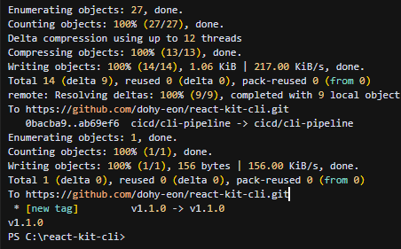 마지막으로 npm publish로 본 배포를 진행했으며 태그 1.1.0과 함께 잘 배포가 되었다.